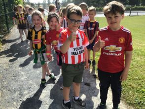 Throughout our school year every class in the school partake in a block of Irish Dancing classes as part of their P.E programme. Evelyn White teaches the classes a varied amount of dances depending on their age. All pupils really look forward to their dance class. At the end of their 8-10 weeks of lessons their parents sometimes come in to see the skills they have acquired.